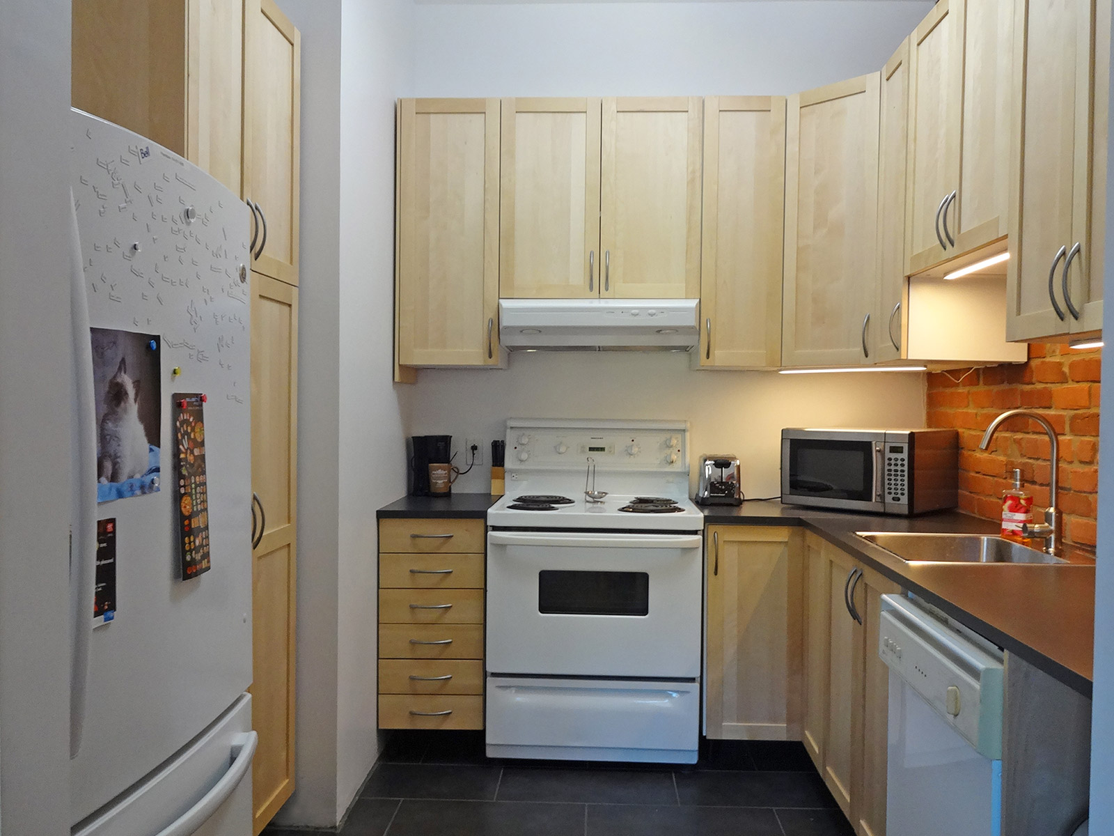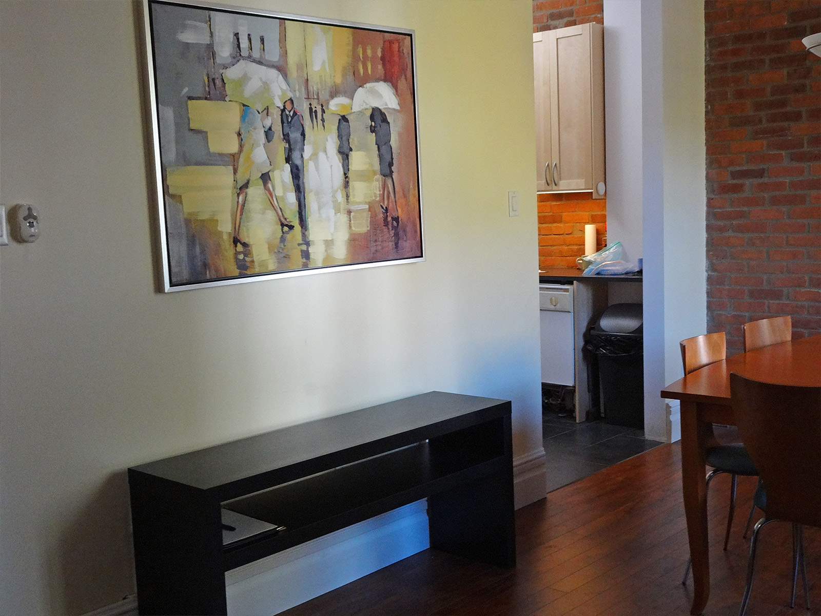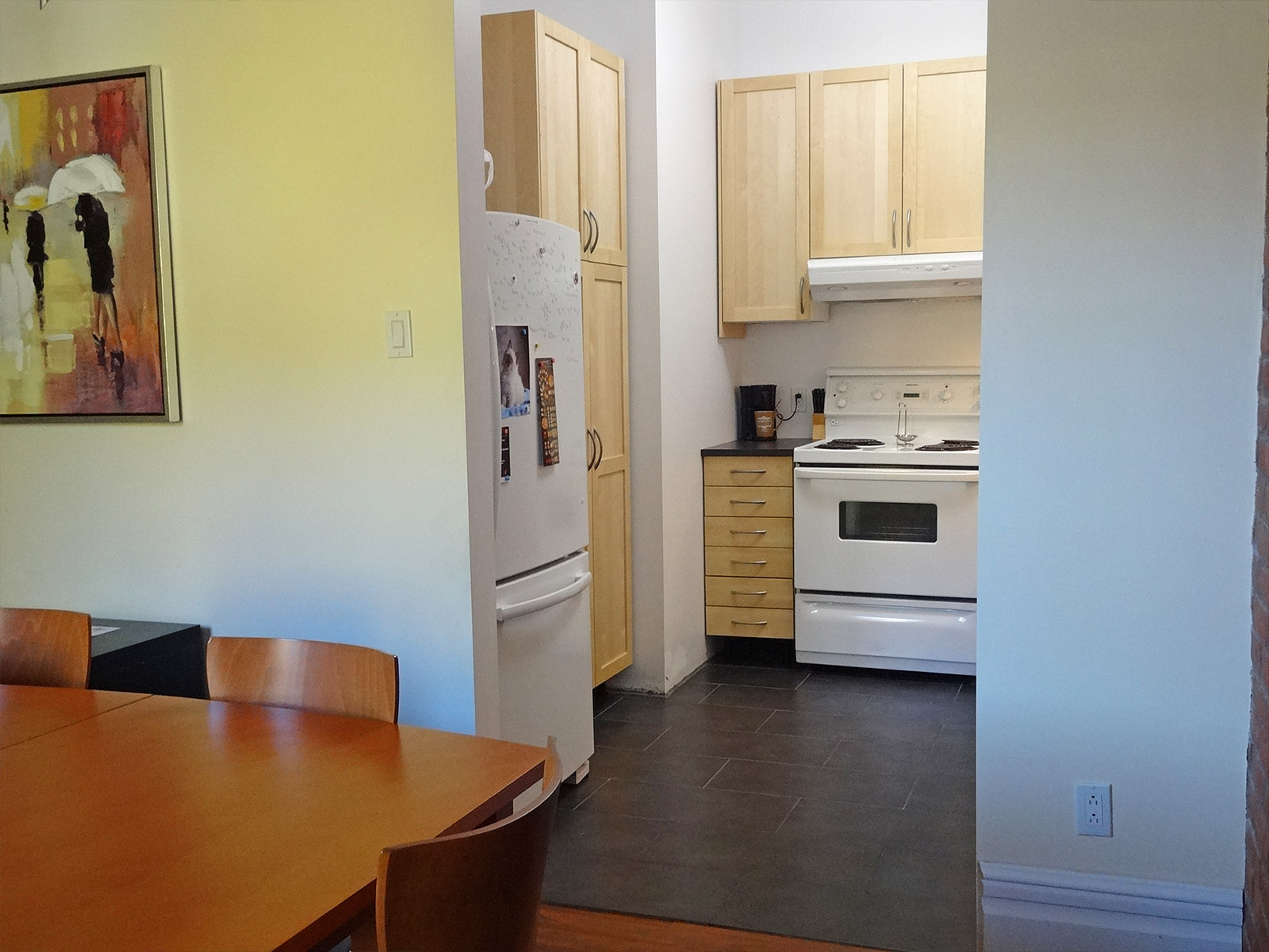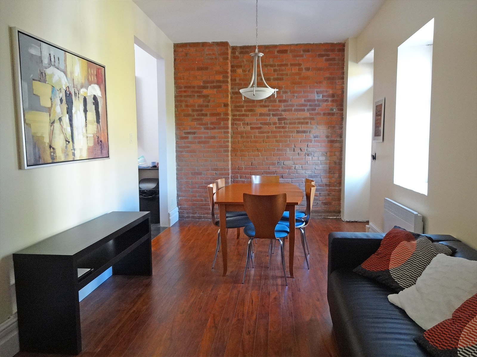 Beau logement de 650 pi.ca. (60 m.ca.) entièrement rénové situé au 2e étage. Plafonds de 10 pi. Grandes fenêtres. Murs de briques. Plancher en bois flottant. Grand balcon arrière.