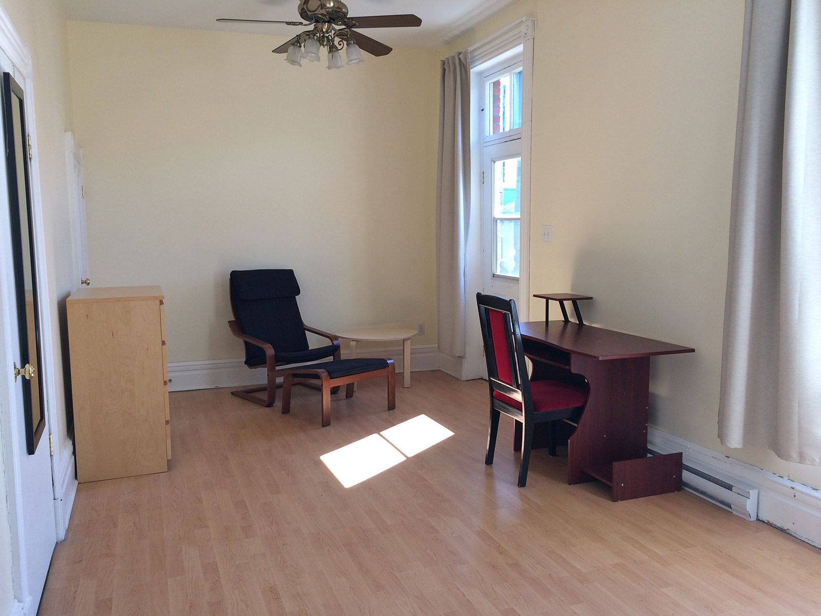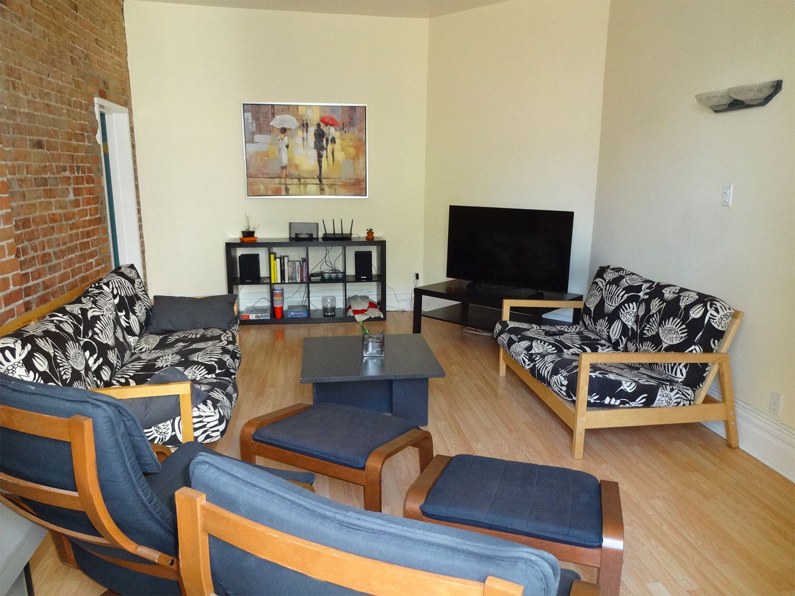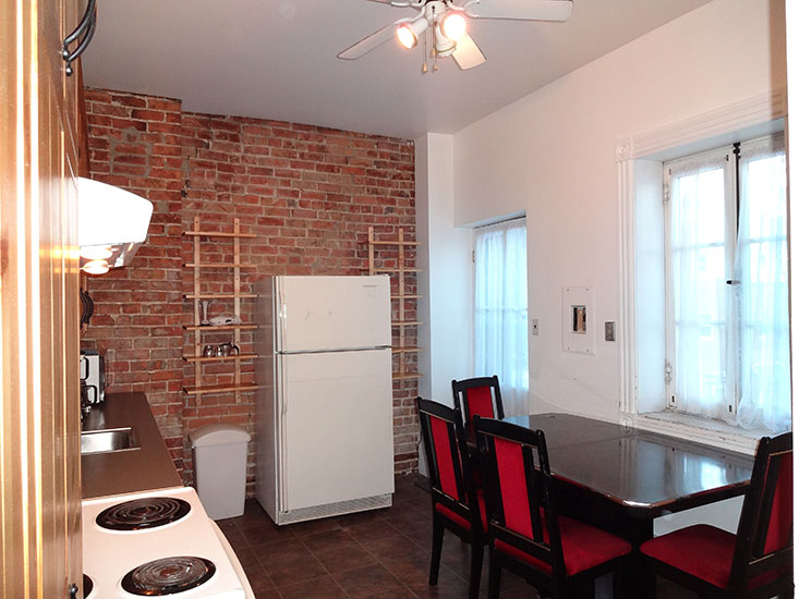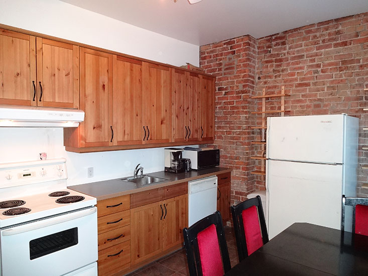 Grand logement de 1600 pi.ca. (145 m.ca.) situé au 3e étage. Plafonds de 10 pi. Grandes fenêtres. Murs de briques. Plancher en bois flottant. Grand balcon arrière. Cuisine rénovée.