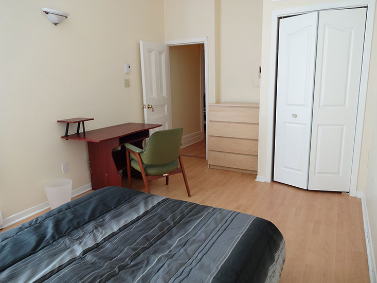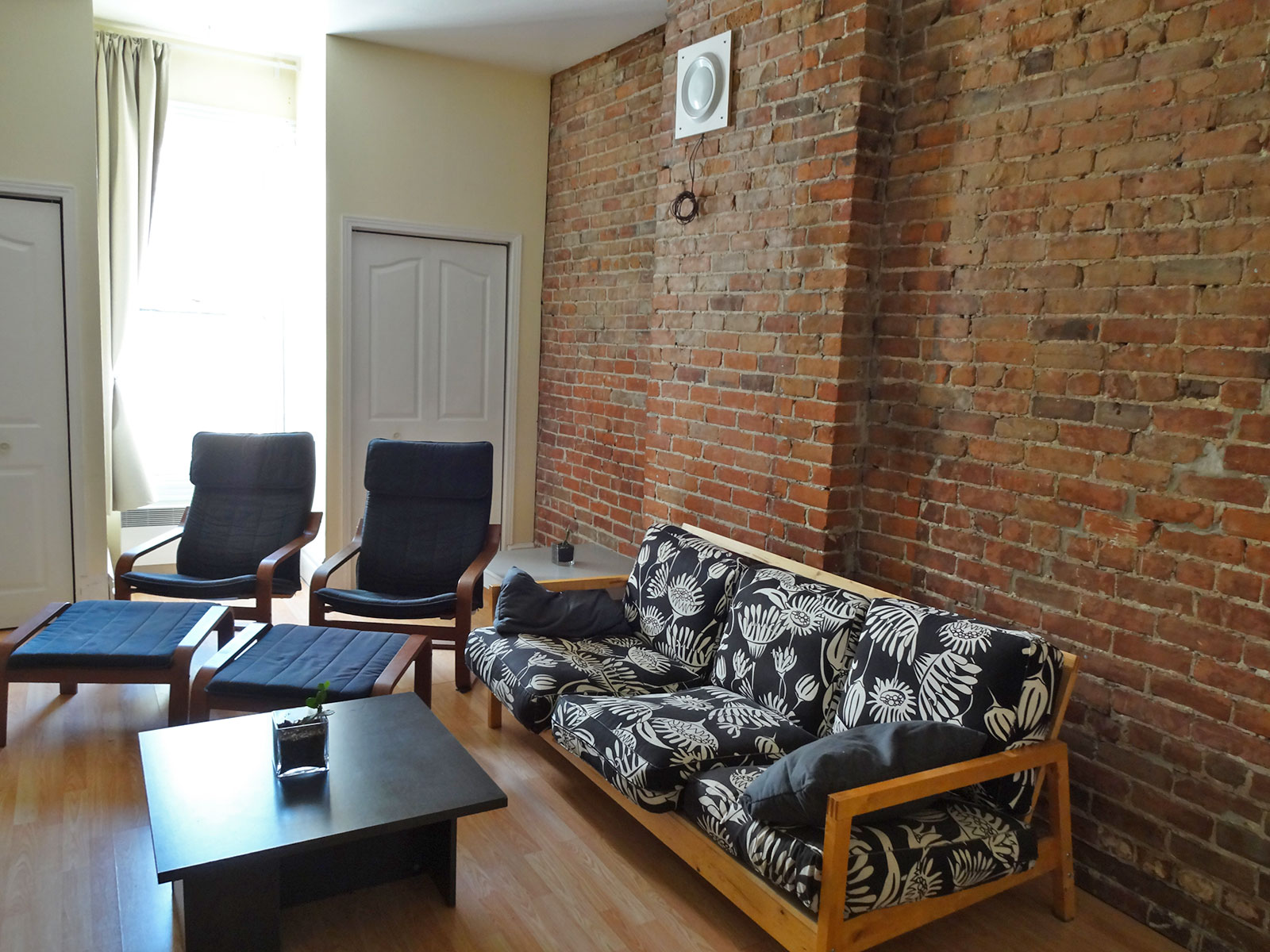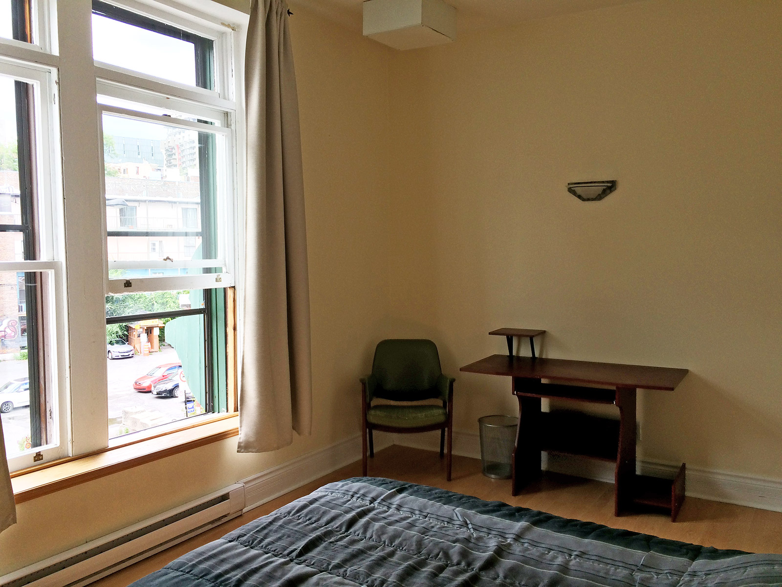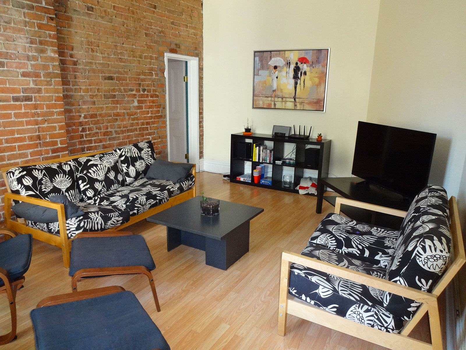 Grand logement de 1600 pi.ca. (145 m.ca.) situé au 3e étage. Plafonds de 10 pi. Grandes fenêtres. Murs de briques. Plancher en bois flottant. Grand balcon arrière. Cuisine rénovée.
