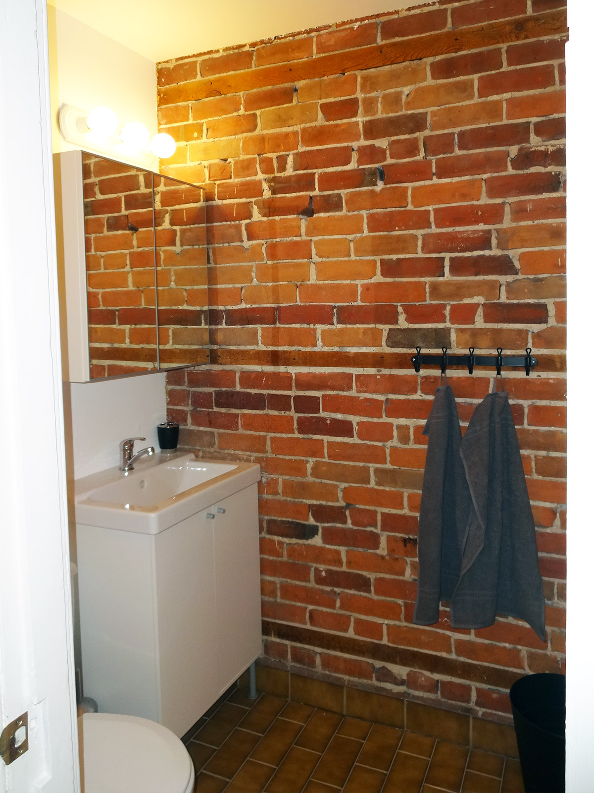 14 pi x 10 pi - De bonne dimension avec mur de brique.